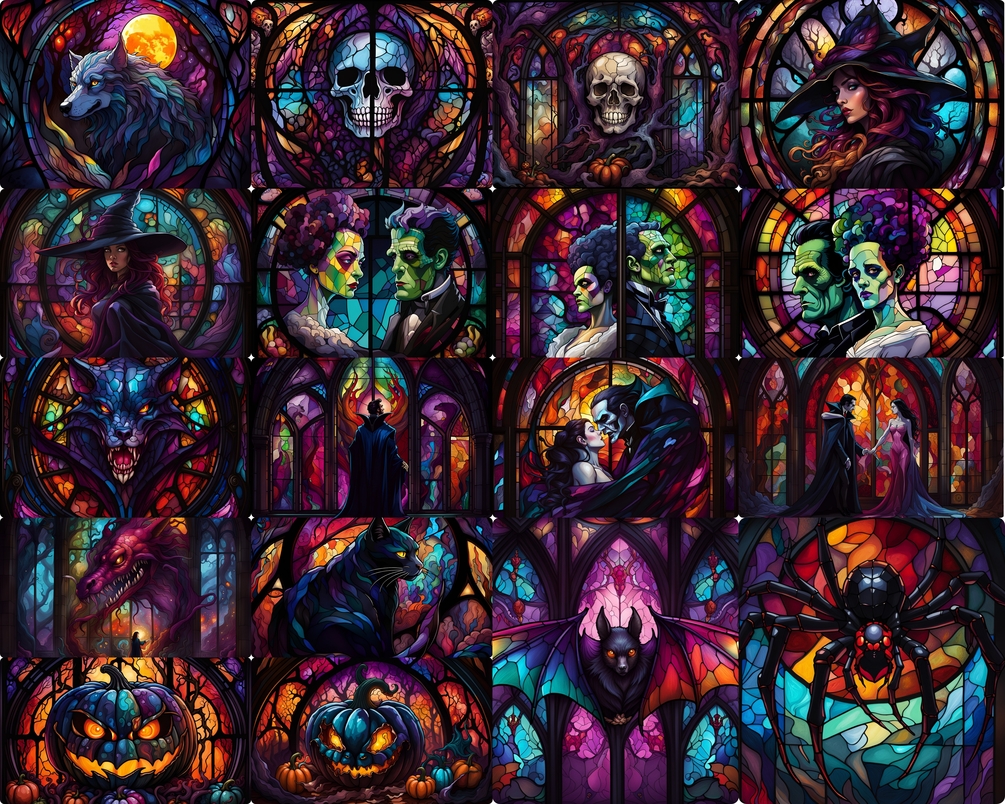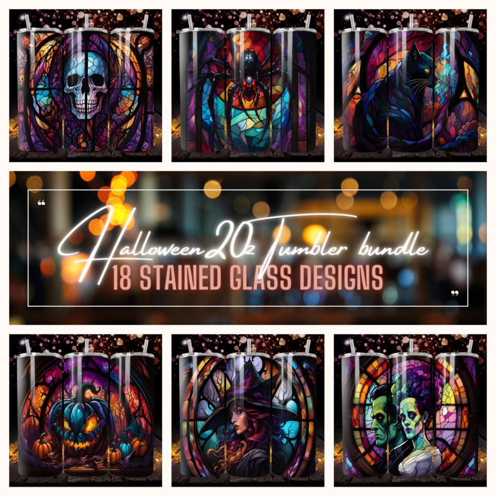 18 Cool Stained Glass window effect Tumbler Wraps Halloween Themed 20 oz Skinny Tumbler Sublimation Design Digital Download Instant DIGITAL ONLY.